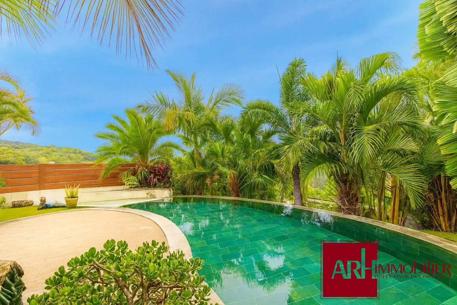 Deck en bois autour de la pisicne