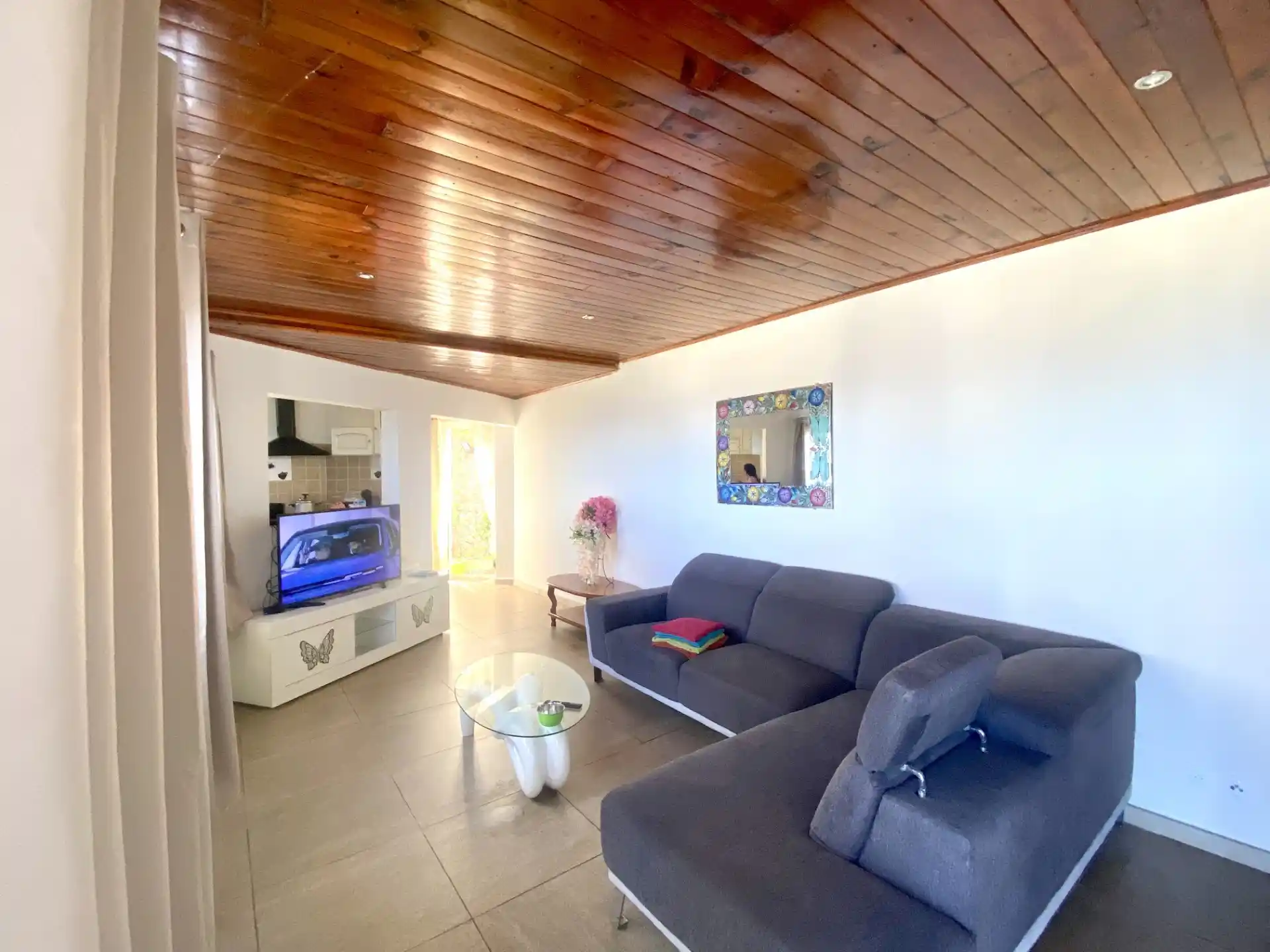 Une pièce de vie spacieuse avec cuisine ouverte aménagée