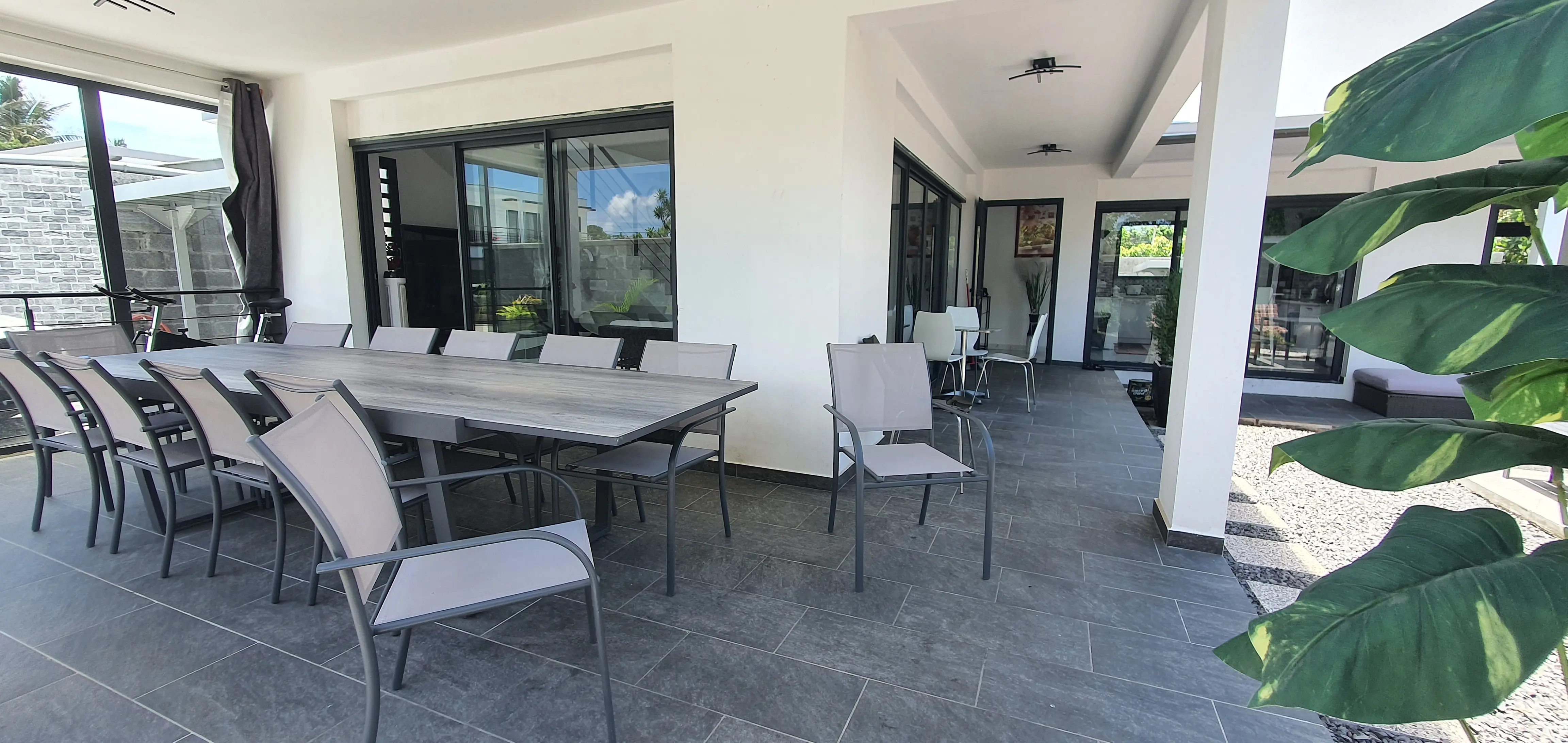 Les extérieurs invitent à la détente avec un jardin d'environ 350 m² utilisables, un coin barbecue, un portail automatisé, un abri voiture et un abri de jardin.