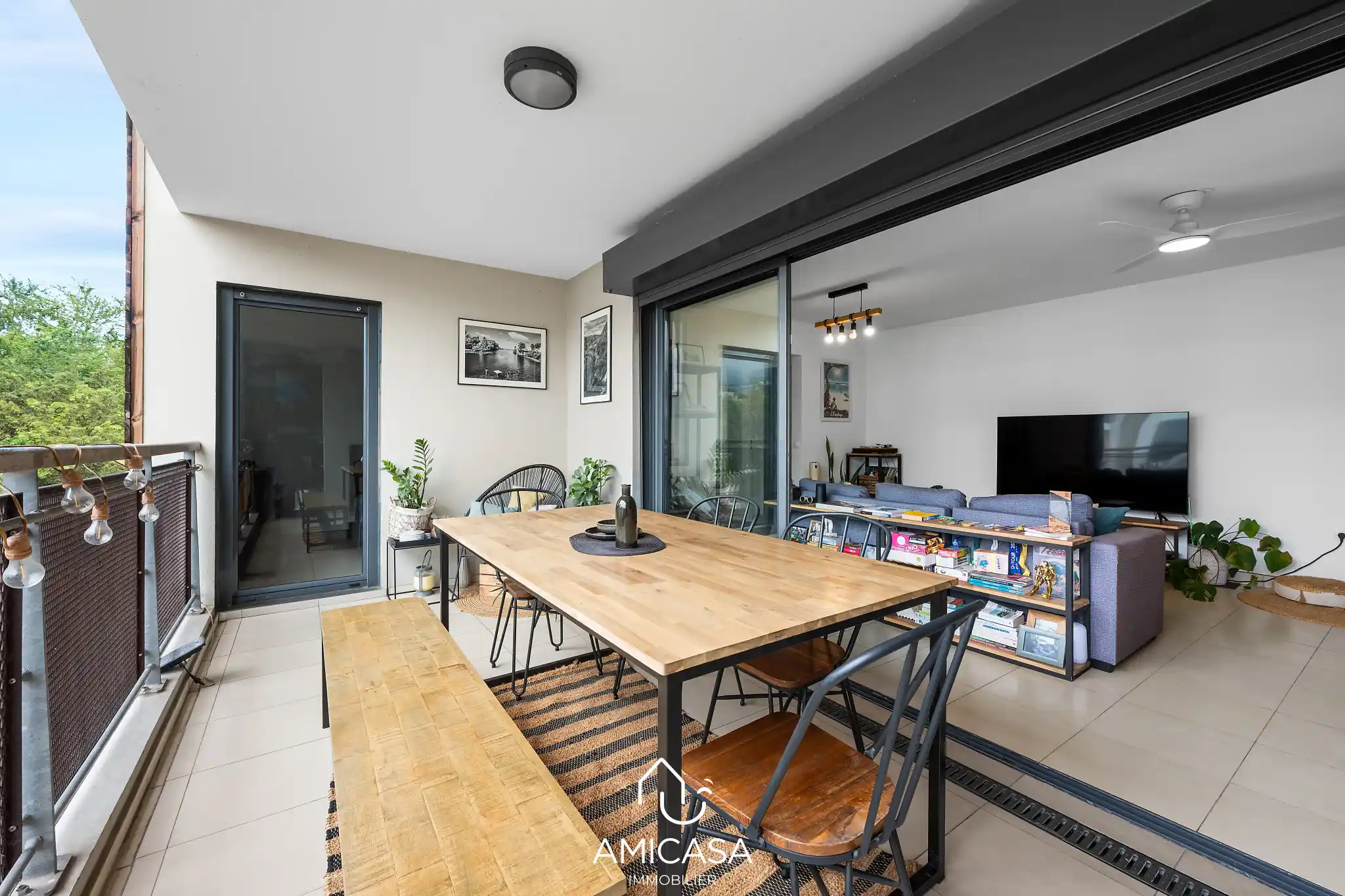 - À l'extérieur, profitez d'une agréable varangue de 14,76 m2, idéale pour vos repas ou moments de détente, prolongé par un espace buanderie.