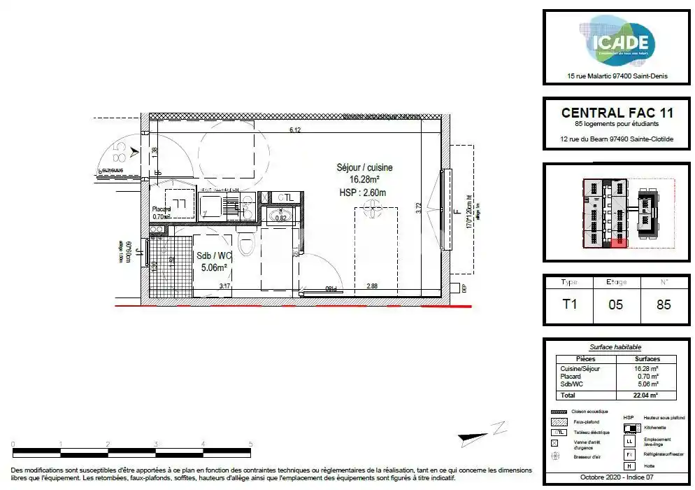 RUNIMMO vous propose à la location à SAINTE CLOTILDE, proche de l'université dans une résidence étudiante neuve, un studio meublé de 22.04m² situé au 5ème et dernier étage avec ascenseur comprenant une entrée avec cuisine, un séjour chambre avec placard, Salle de bains avec WC. Disponible dès maintenant. Ce bien est réservé exclusivement aux étudiants. Si ce bien vous intéresse contactez Emilie à l'adresse mail : e.lallemand@runimmo.re ou au 0262 81 88 88.