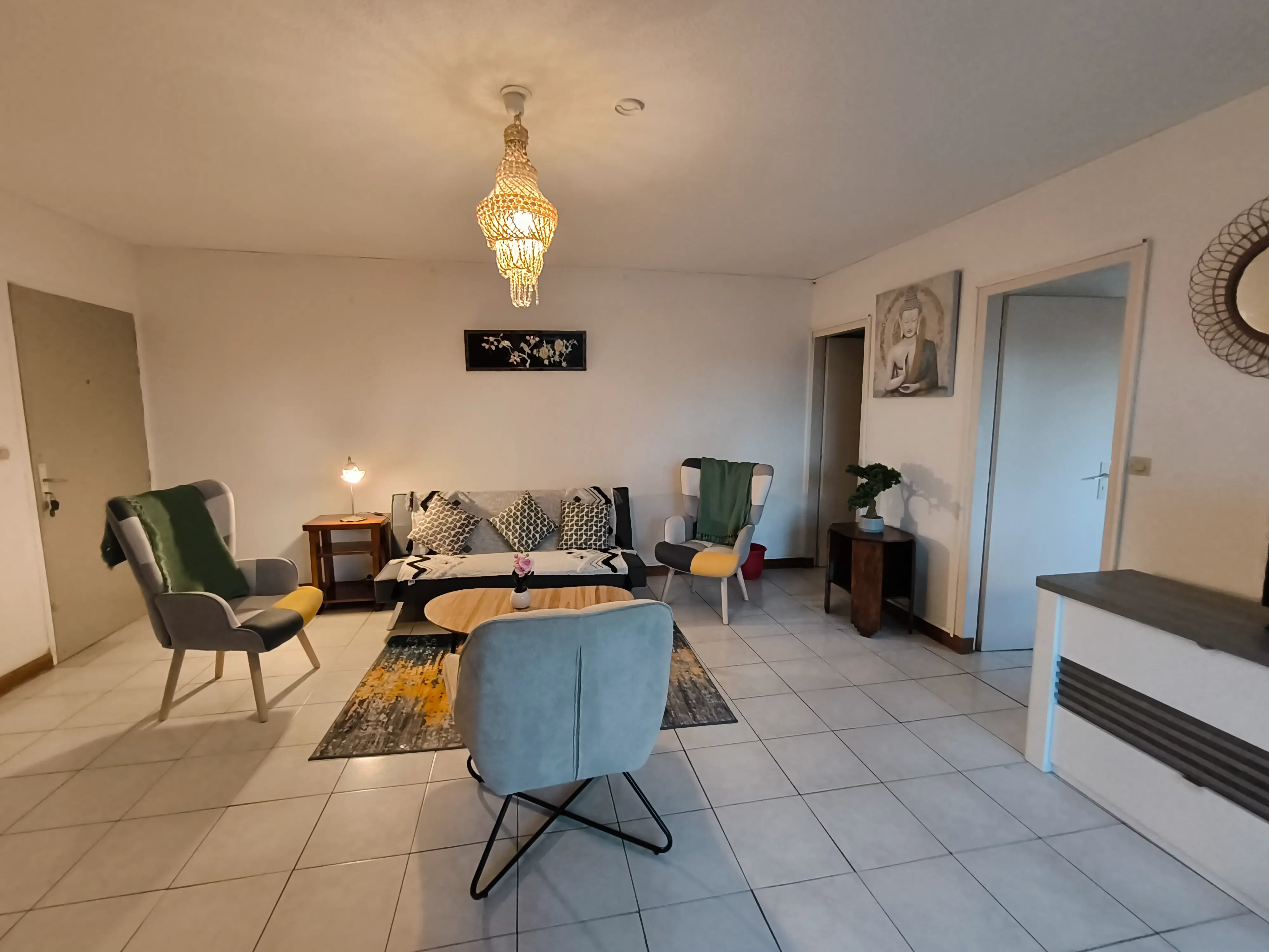 Appartement type F2 de 48,81 M2, au 1 er étage, 2 pièces séjour, une chambre, + balcon fermé vitré transformé en salle à manger, cuisine intégrée, vaisselle comprise, entièrement meublé à neuf, terrasse 1 Boulevard de la Providence à Saint-Denis, 10 mn à pied du centre-ville, porte d'entrée blindée, serrure protégée par cache magnétique, ascenseur, climatiseurs, calme, standing, parking privatif, proche toutes commodités. Libre de suite.