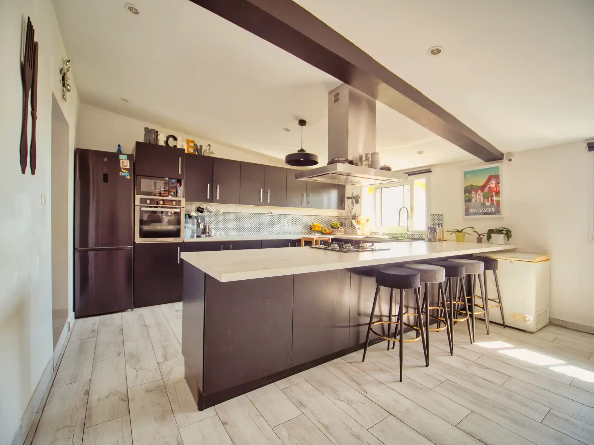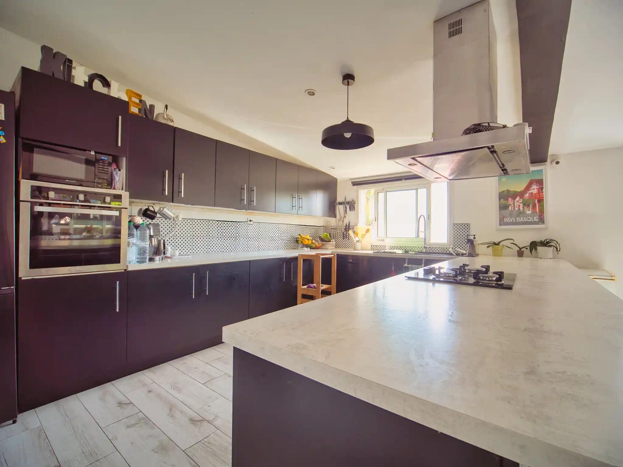 Cuisine moderne entièrement équipée avec îlot central et électroménager