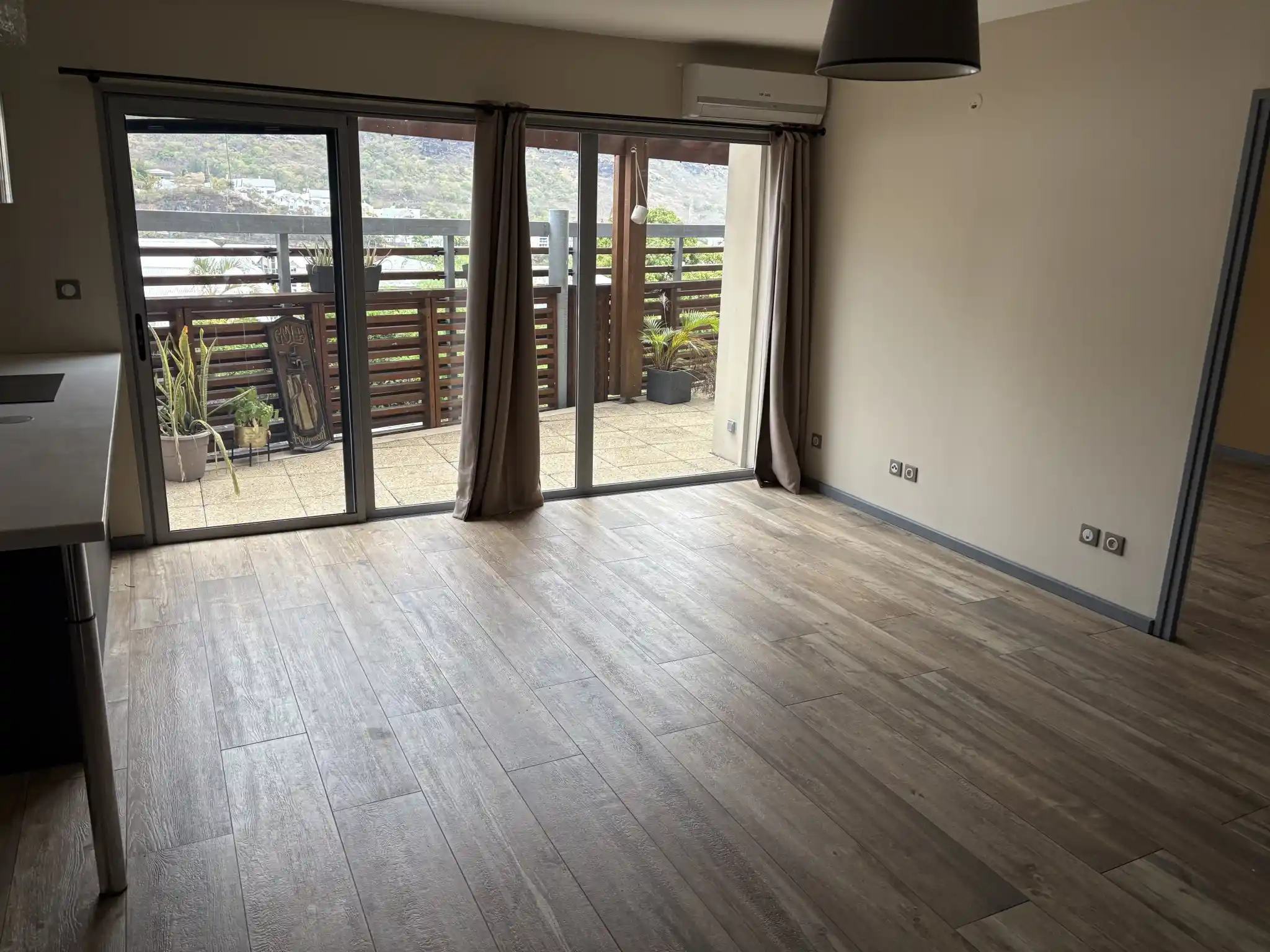 Séjour lumineux donnant sur une terrasse panoramique de 14 m2,
