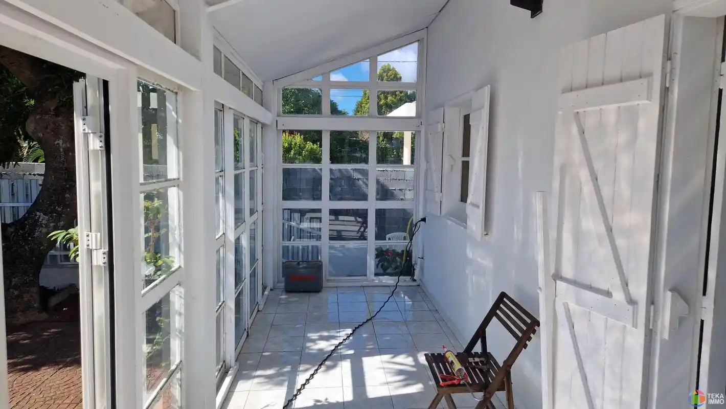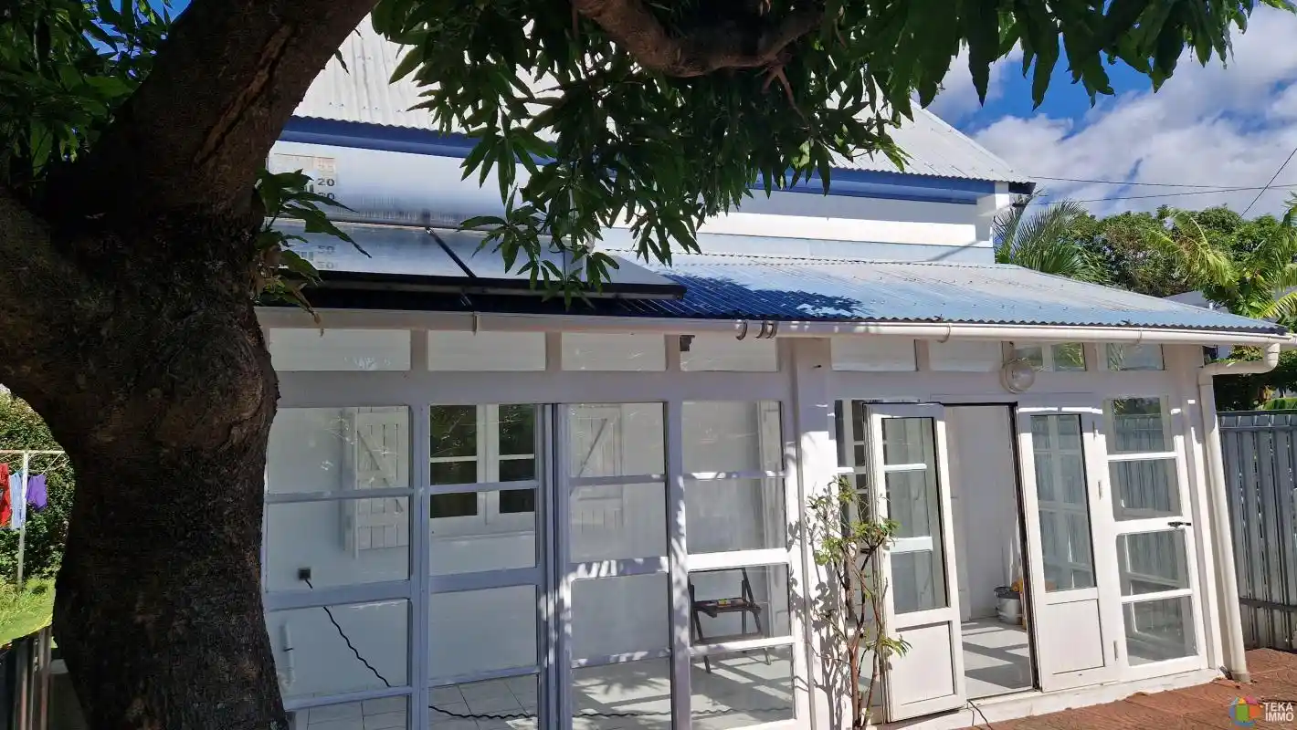 maison à vendre F3 de 80M2 sur un terrain de 208M2, composée de 2 chambres et un bureau et une mezzanine à l'étage, au rez-de-chaussée: un salon, une salle à manger et une cuisine de 28M2, une salle de bains, un wc, une terrasse fermée de 12M2, un jardin arboré, située à Ste-Clotilde et à 5 minutes du boulevard sud et de la 4 voie , Ce bien vous est proposé au prix de 297000 euros, honoraires à la charge DU VENDEUR . DPE non requis. Contactez votre Agent mandataire Teka Immo KADER EI au 06 93 90 62 95 ou kader@tekaimmo.fr, inscrit au tribunal de Saint Denis sous le numéro R.S.A.C 812 383 531.Annonce rédigée sous la responsabilité éditoriale de l'agent. Barème visible sur le site de Teka Immo. http://www.tekaimmo.fr/pdf/honoraires.pdf Les informations sur les risques auxquels ce bien est exposé sont disponibles sur le site Géorisques : www.georisques.gouv.fr