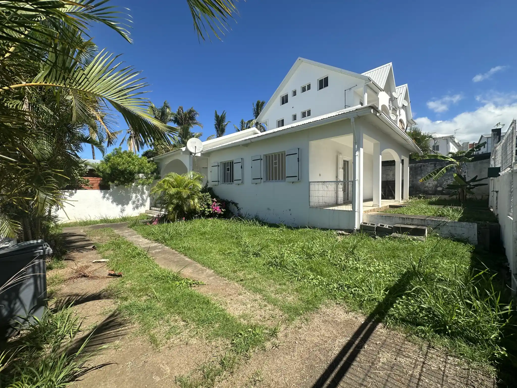 Situé dans les Hauts de Bois de Nèfles Sainte Clotilde (10 minute du boulevard sud) cette villa F5 (non meublée) de 97.5m² implantée sur un terrain de 260m² est composée de cette façon :