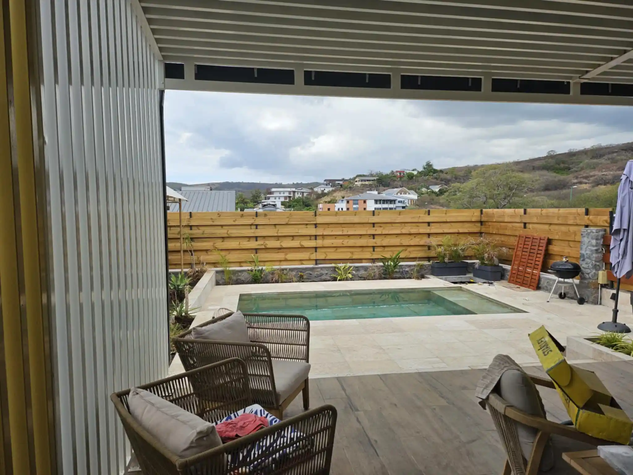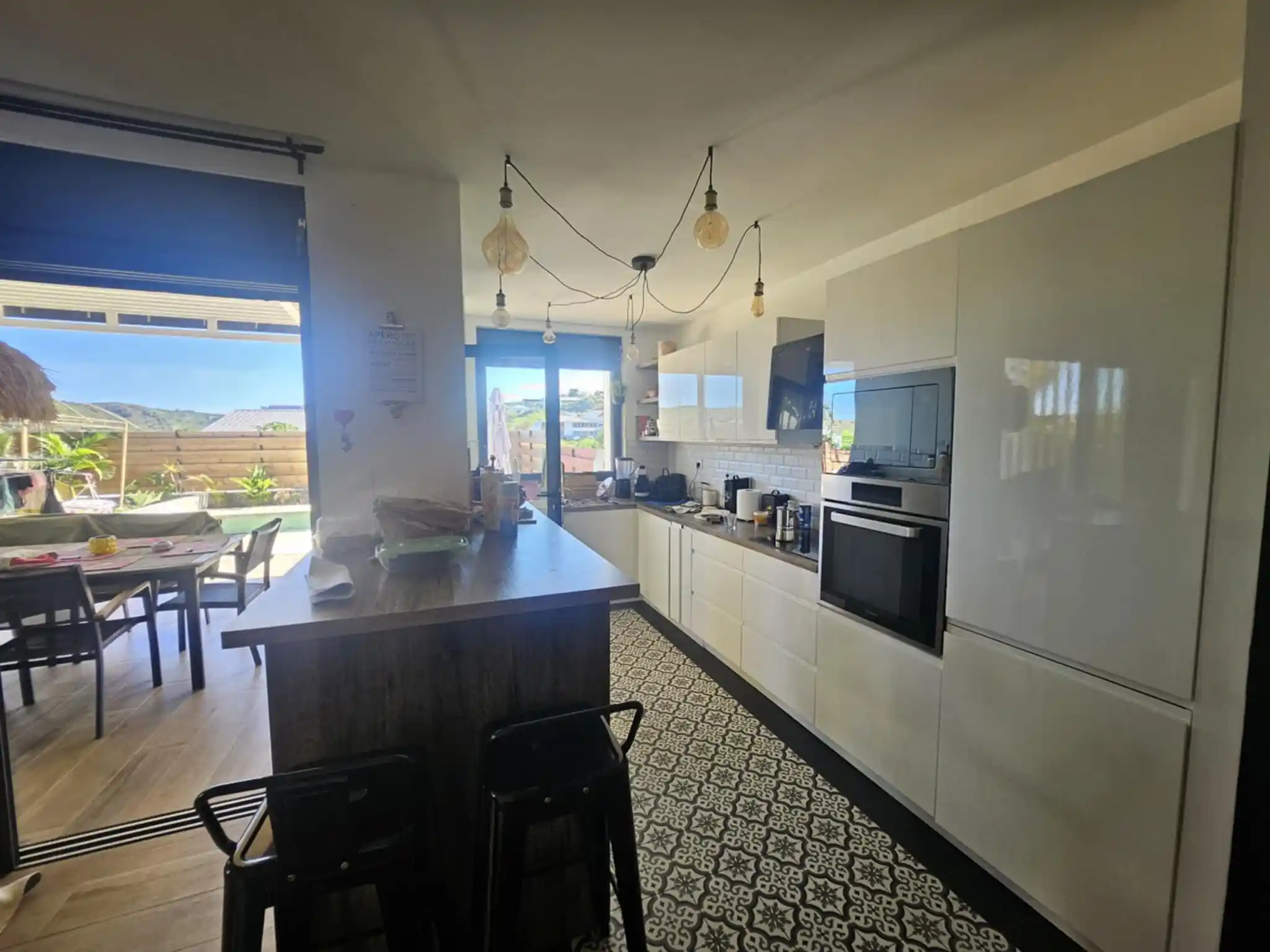 Je dispose d'un très bel extérieur, jardin, piscine, grande varangue, pour des journées de détente inoubliables. Vous accédez à la villa par le portail automatique qui vous permettra de stationner un ou deux véhicules dans la cour. Un parking visiteur est disponible pour les amis.