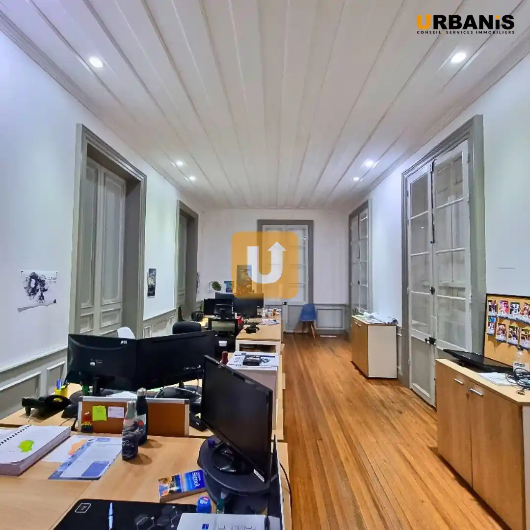 Entièrement rénové, nous retrouvons du bois noble dans les bureaux et une belle hauteur sous plafond donnant un caractère indéniable aux bureaux.