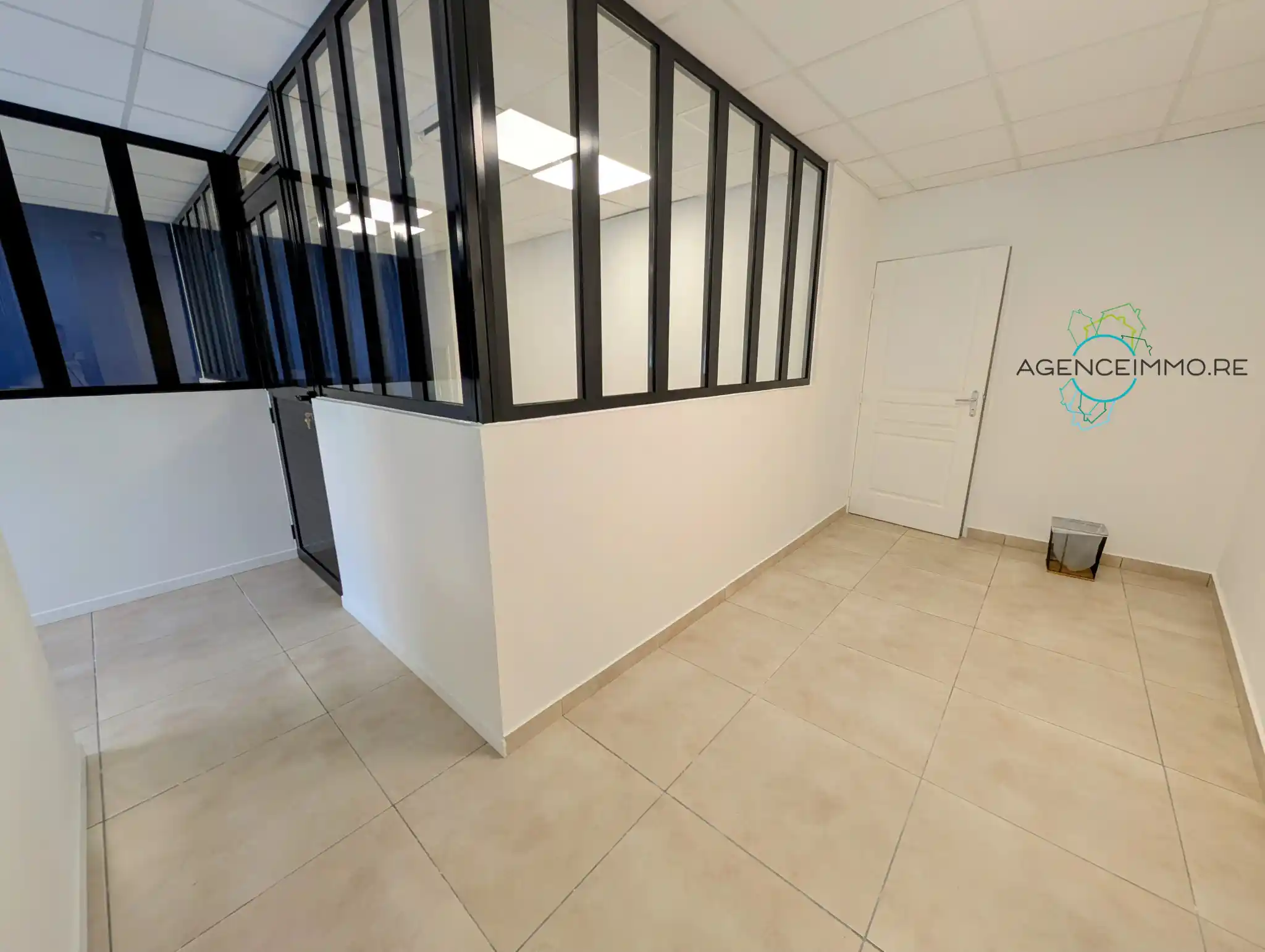 Il comprend un espace d'accueil, trois bureaux avec verrières, un sanitaire.