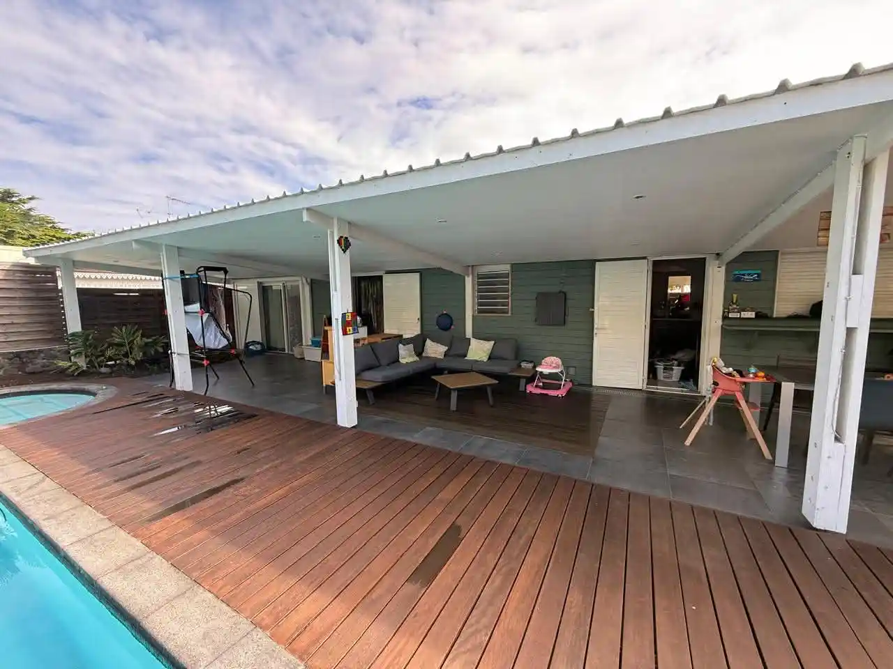 Si vous m'adoptez, vos journées commenceront dans une atmosphère paisible et se termineront sous ma belle varangue, tournée vers la piscine et le jardin arboré.Plus de 650 m2 de terrain pour voir grandir les enfants, organiser des barbecues, célébrer les anniversaires ou simplement savourer la douceur de vivre.