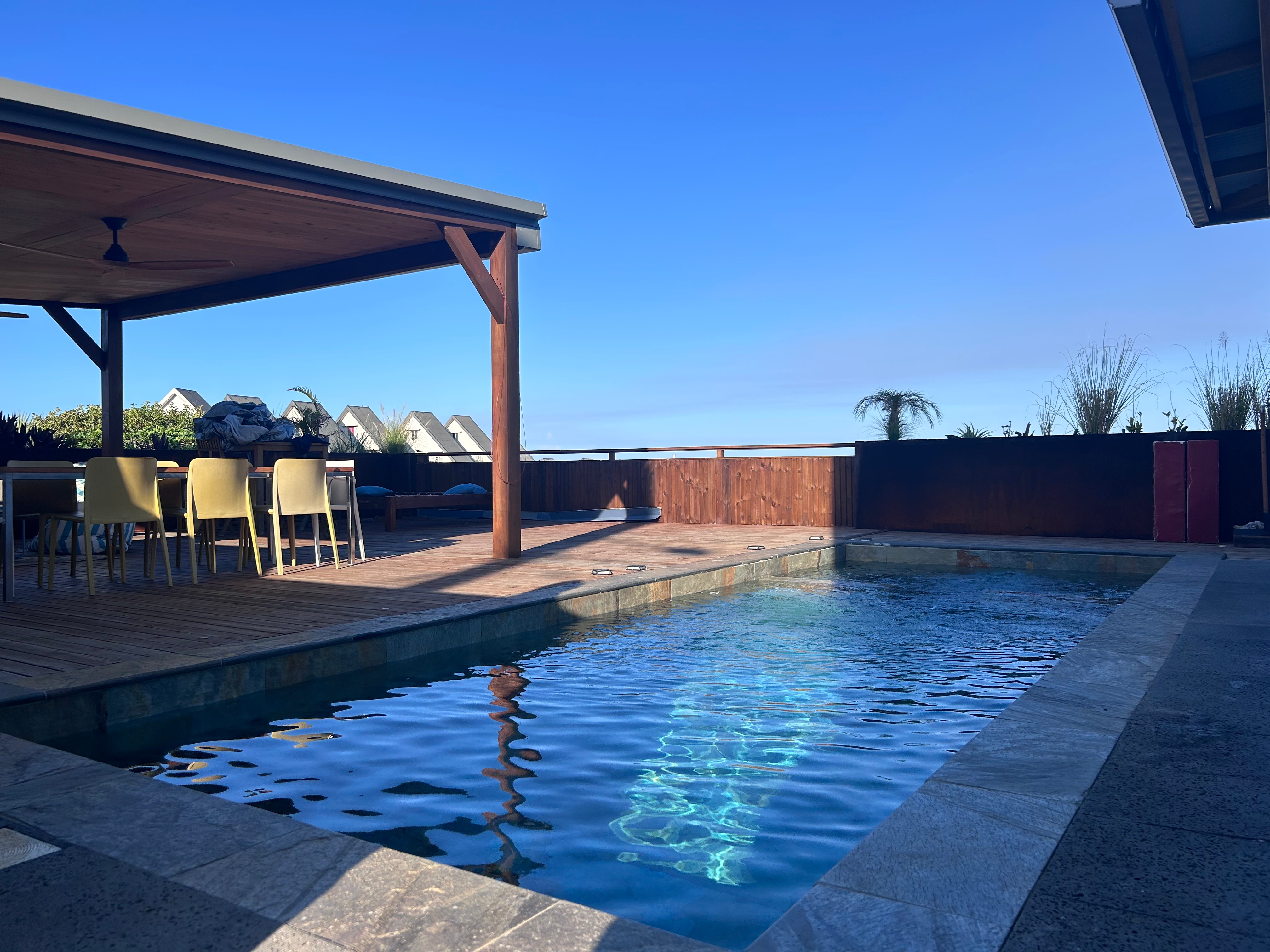 À l’extérieur, vous profiterez d’un véritable espace de détente : piscine avec pompe à chaleur, douche extérieure et WC, grande terrasse en bois idéale pour recevoir