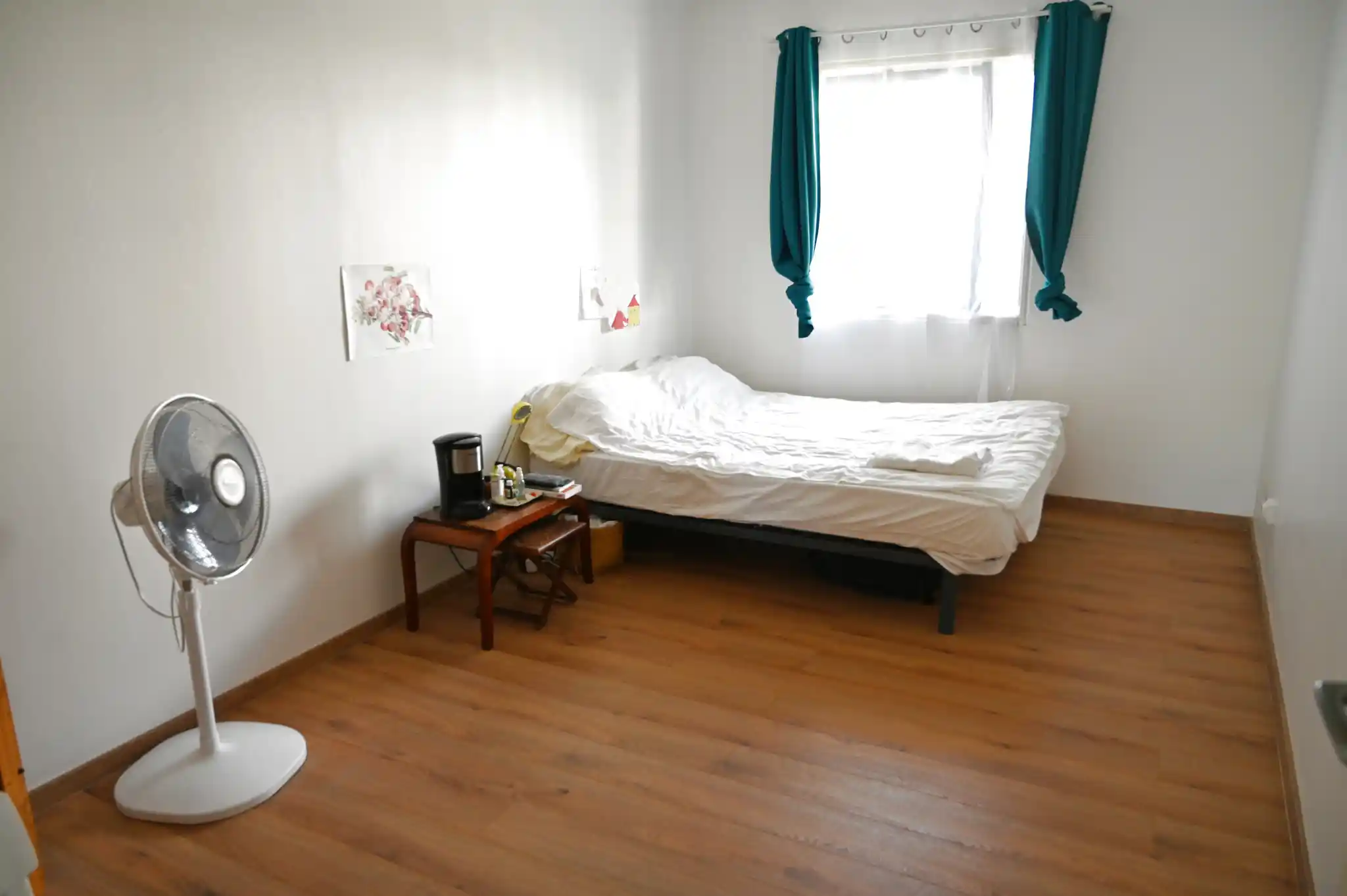 Il est composé d'une entrée, un séjour donnant sur la terrasse, une cuisine aménagée et semi équipée avec un coin salle à manger, deux chambres de plus de 11m2 dont une avec placard encastré, une salle d'eau et wc séparé.