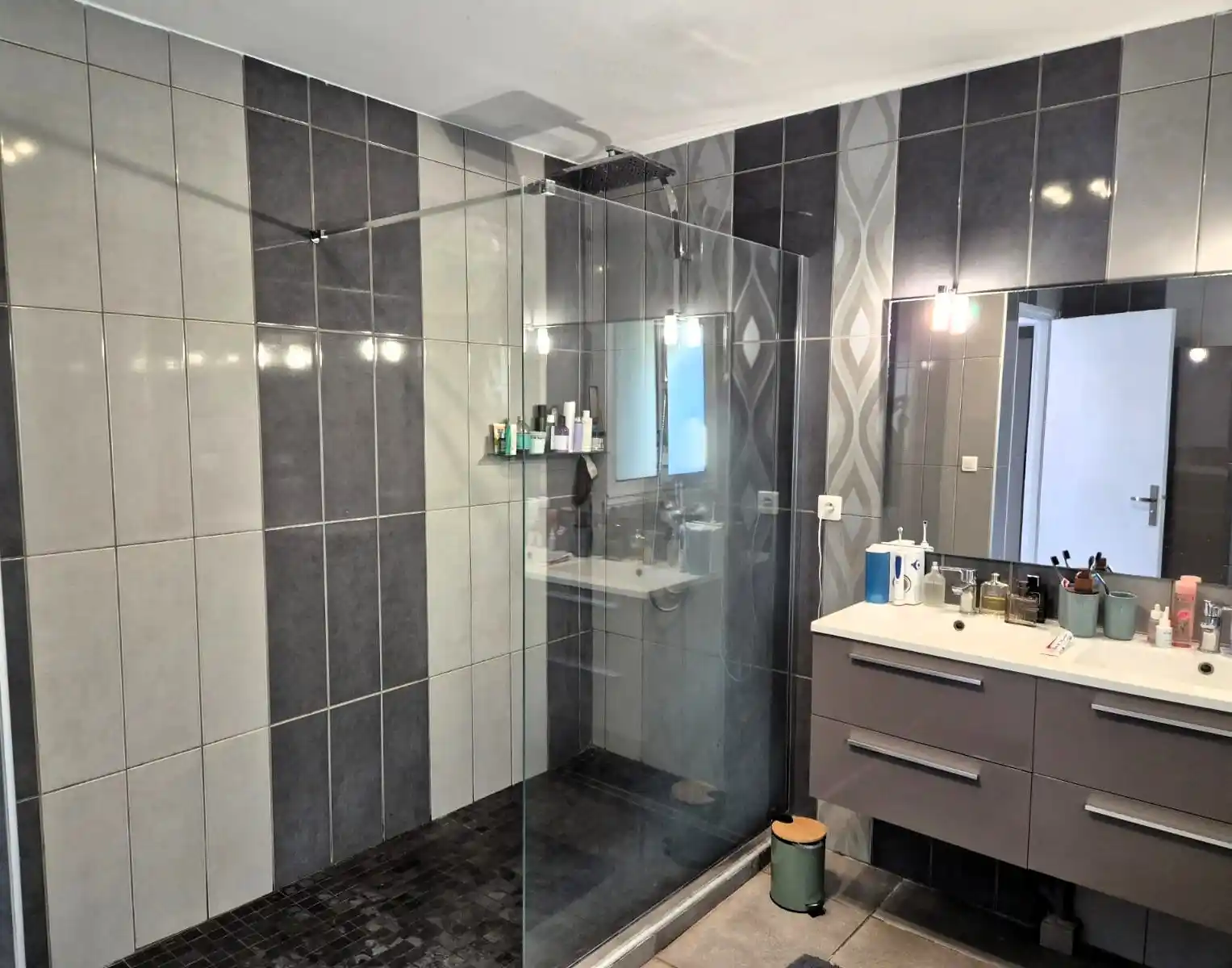 Salle d'eau moderne : douche à l'italienne, double vasques