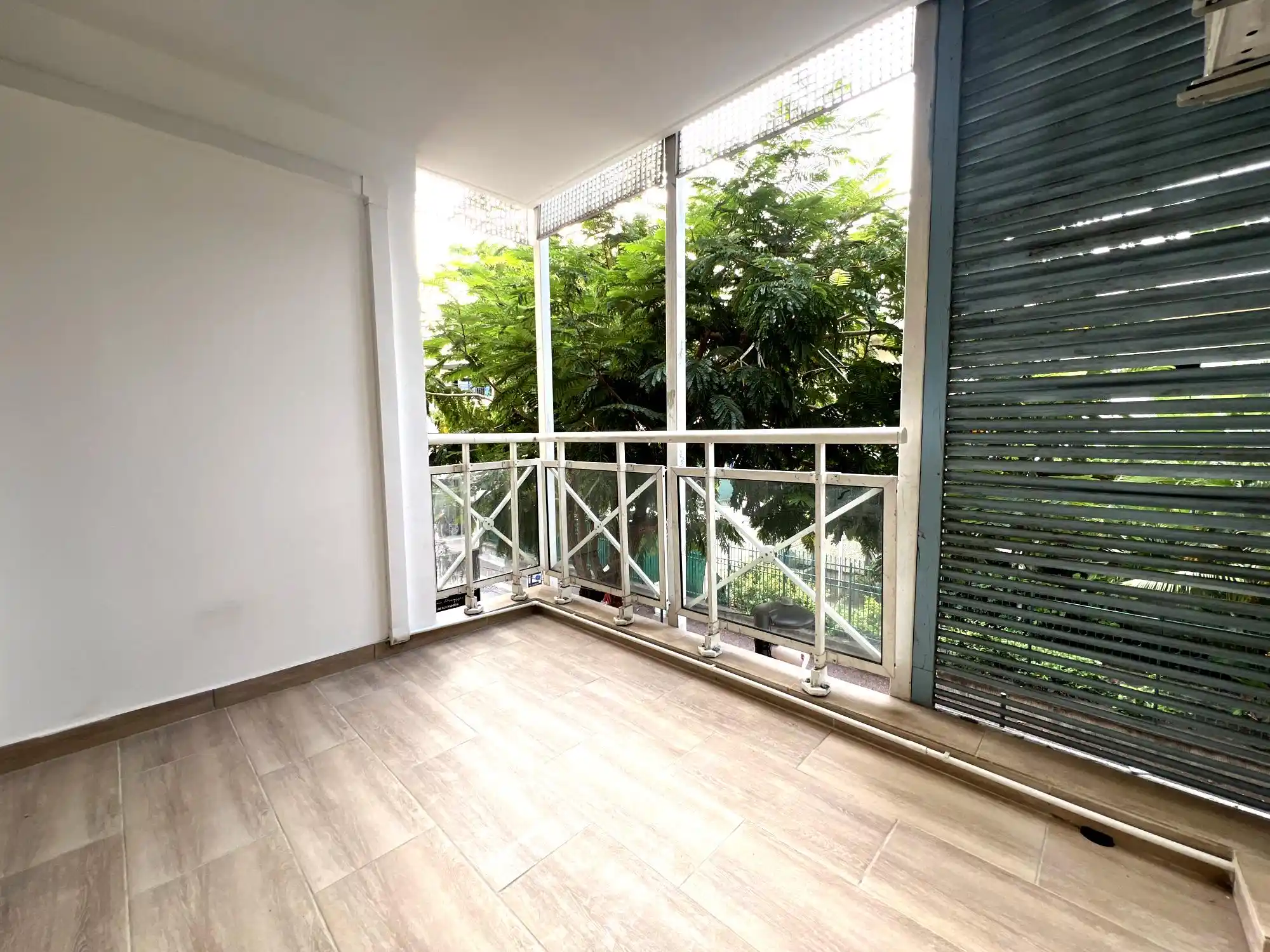• Un séjour lumineux donnant sur un balcon de côté rue.