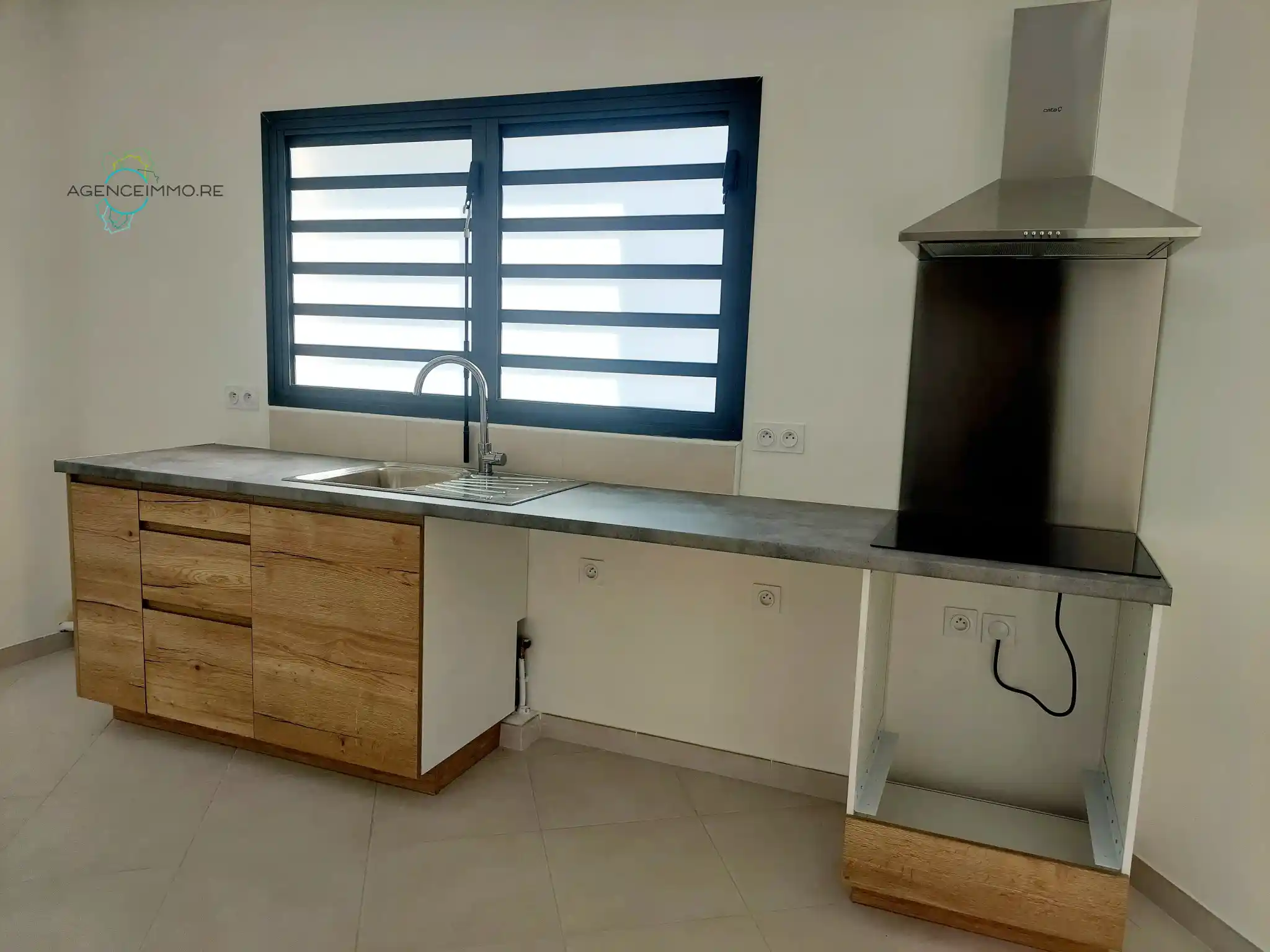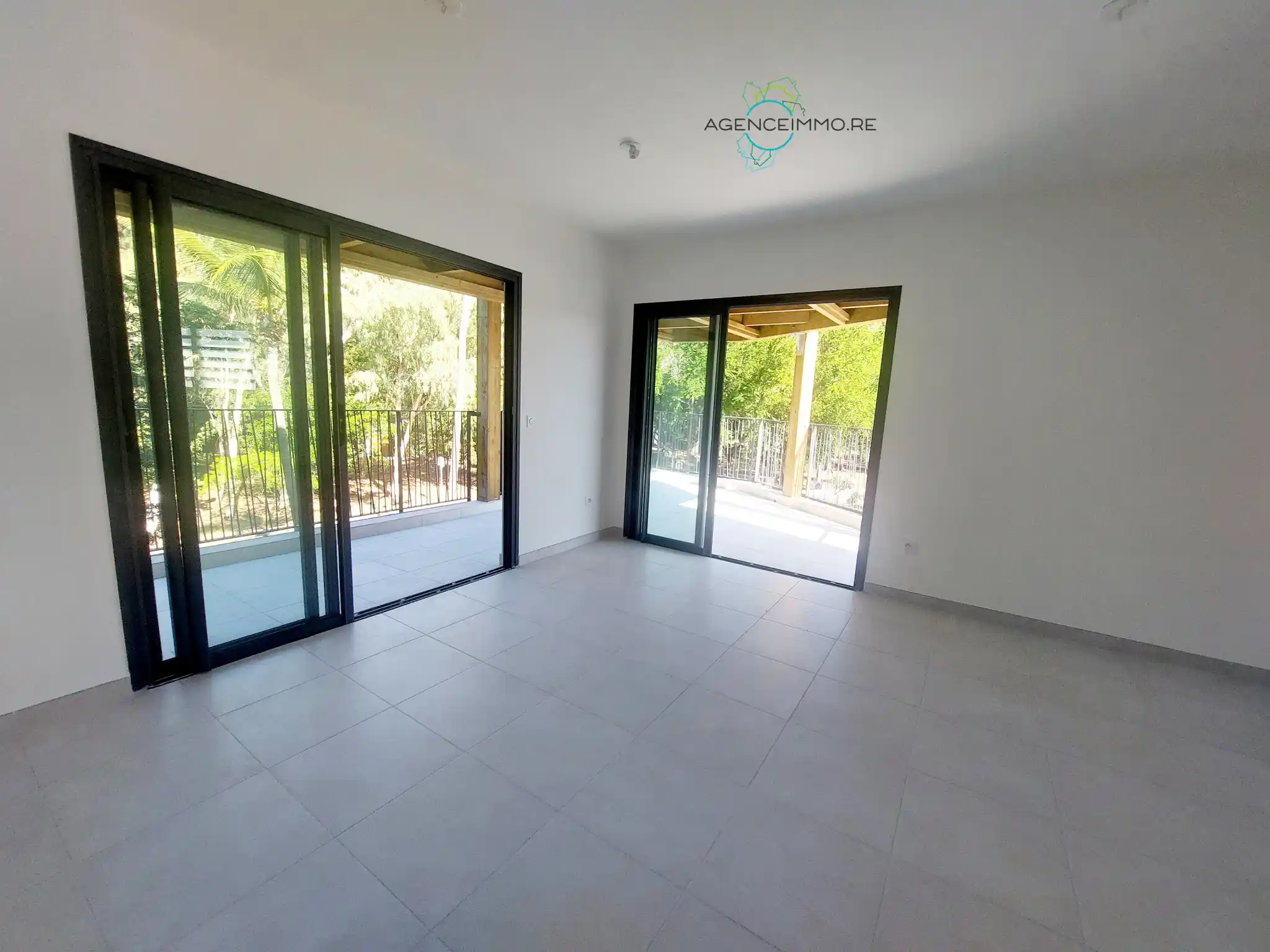 L'appartement comprend : un séjour donnant sur une spacieuse varangue de 19,20m2, un cuisine ouverte aménagée semi-équipée, deux chambres, une salle d'eau et un WC.