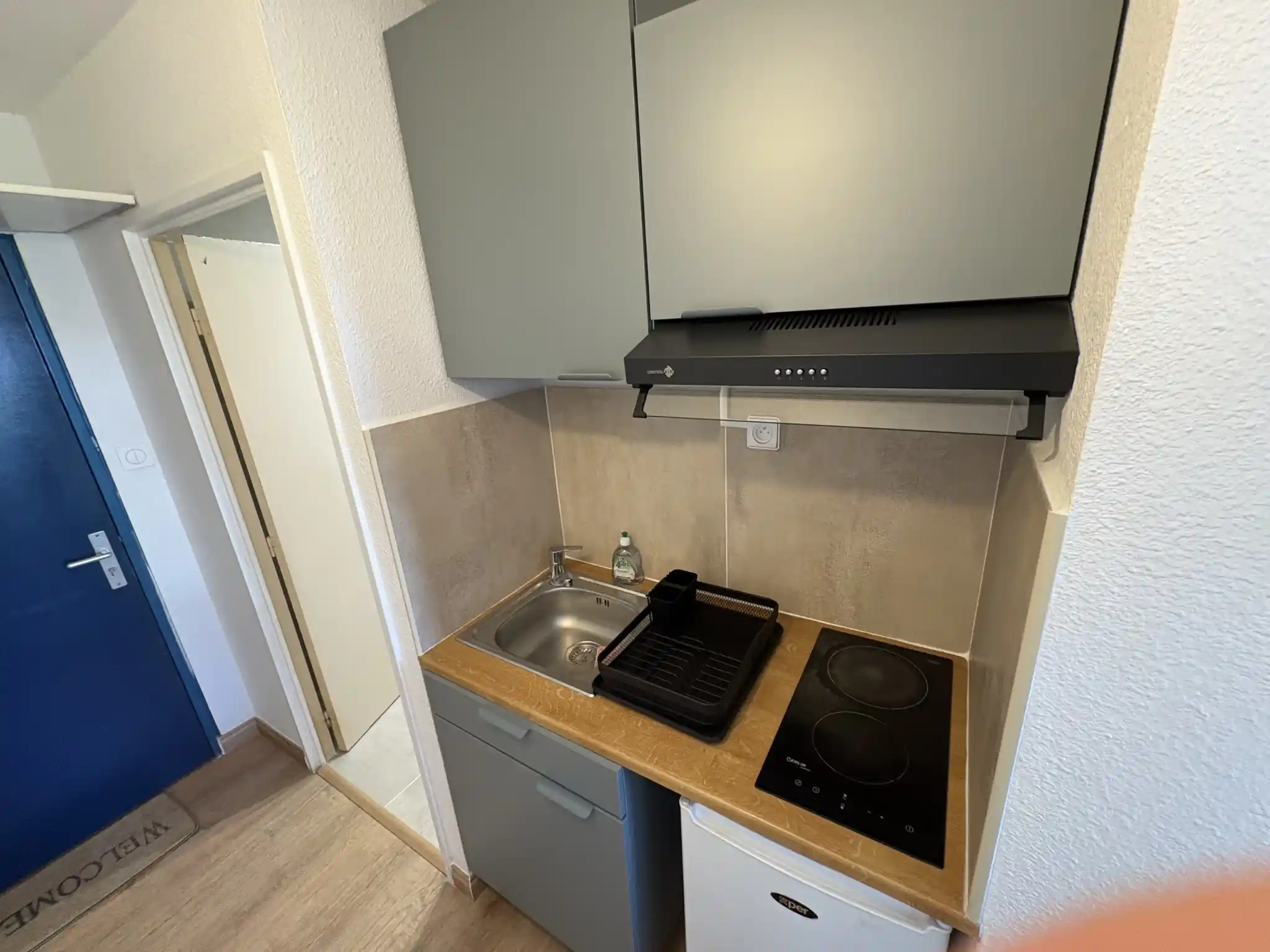 Il se compose d'une entrée, d'une pièce principale avec placards, d'une salle de d'eau avec wc, d'une kitchenette, un balcon et une place de parking privé et sécurisée.