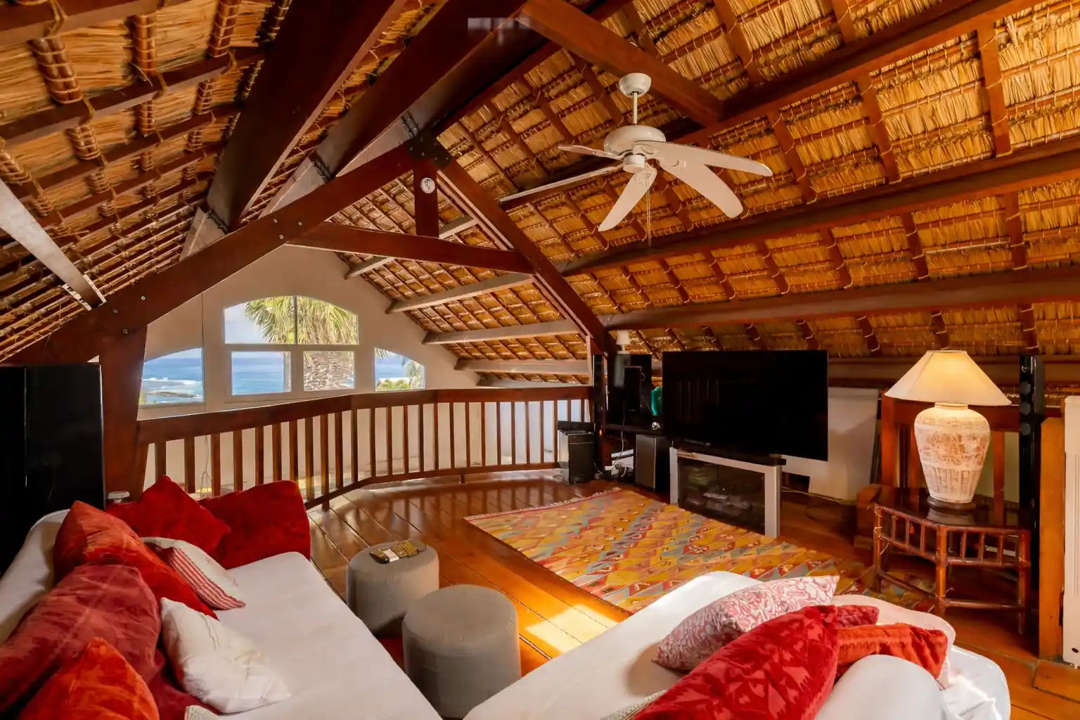 Pièce à vivre traversante de 72 m² avec toit cathédrale en chaume