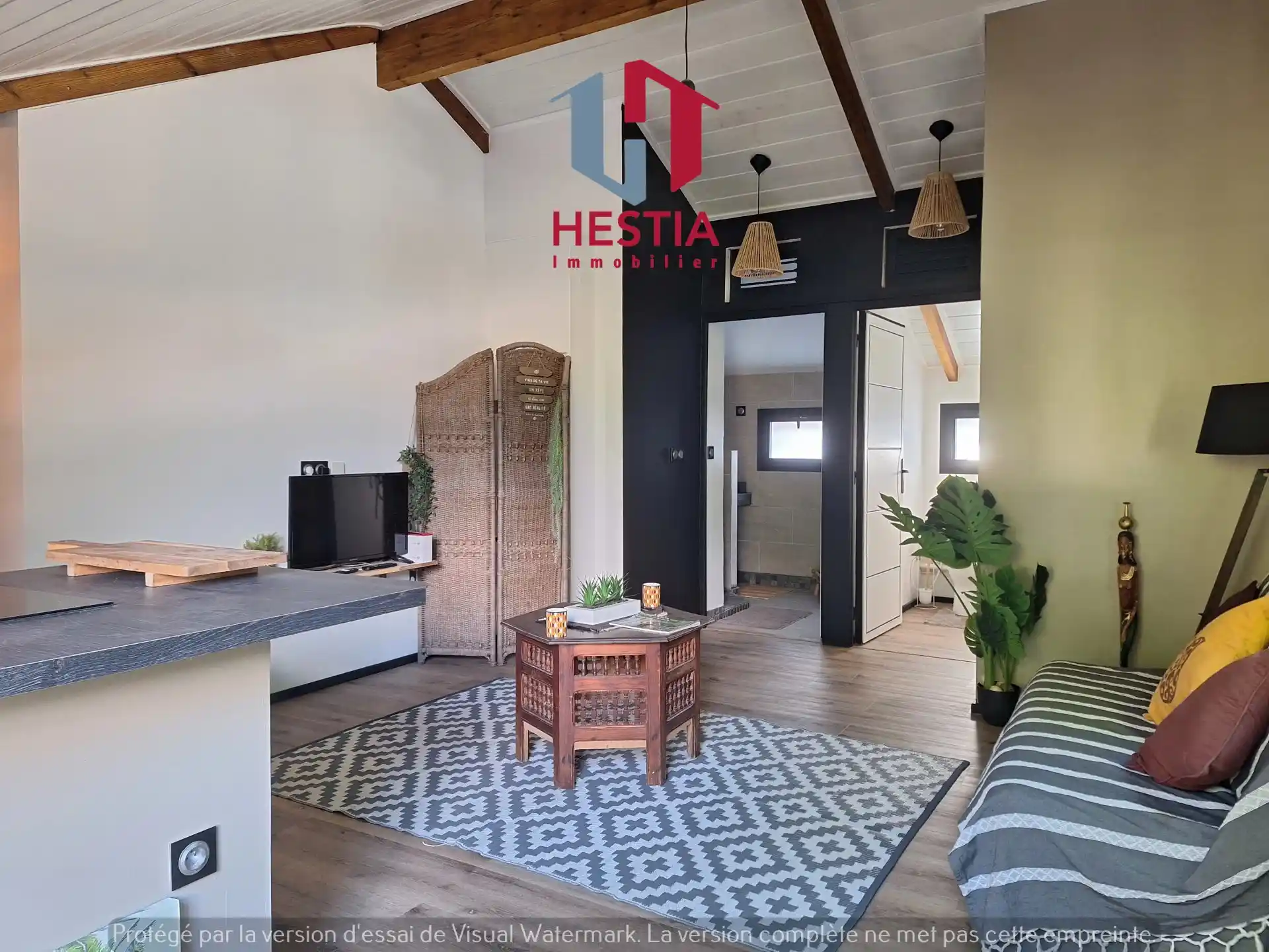 Il se compose d'un salon cuisine, d'une chambre, d'une salle de bains, d'un WC séparé ainsi qu'une terrasse.