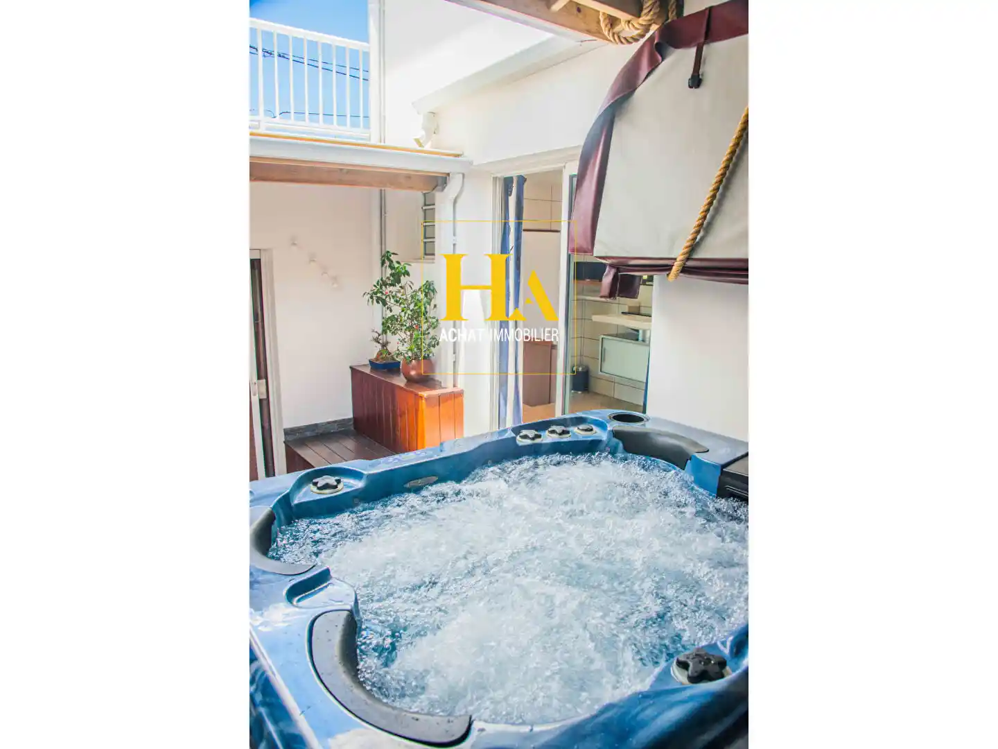 Grande SDB de 9.35 m² avec WC, ainsi que son patio de 15 m² ou vous pourrez vous relaxer dans votre Jacuzzi en toute intimité à l'abris des regards