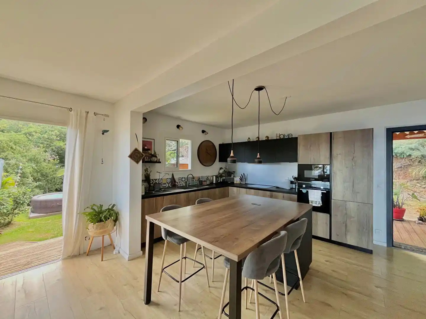 Implantée sur une parcelle de plus de 2 400 m², cette maison construite en 1995 développe environ 129 m² habitables. Elle allie parfaitement le charme authentique créole et le confort moderne grâce à une rénovation complète et soignée.