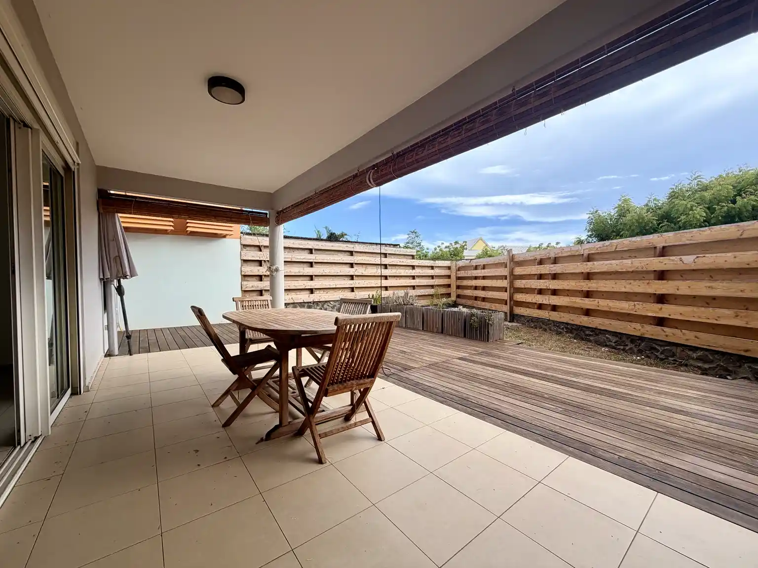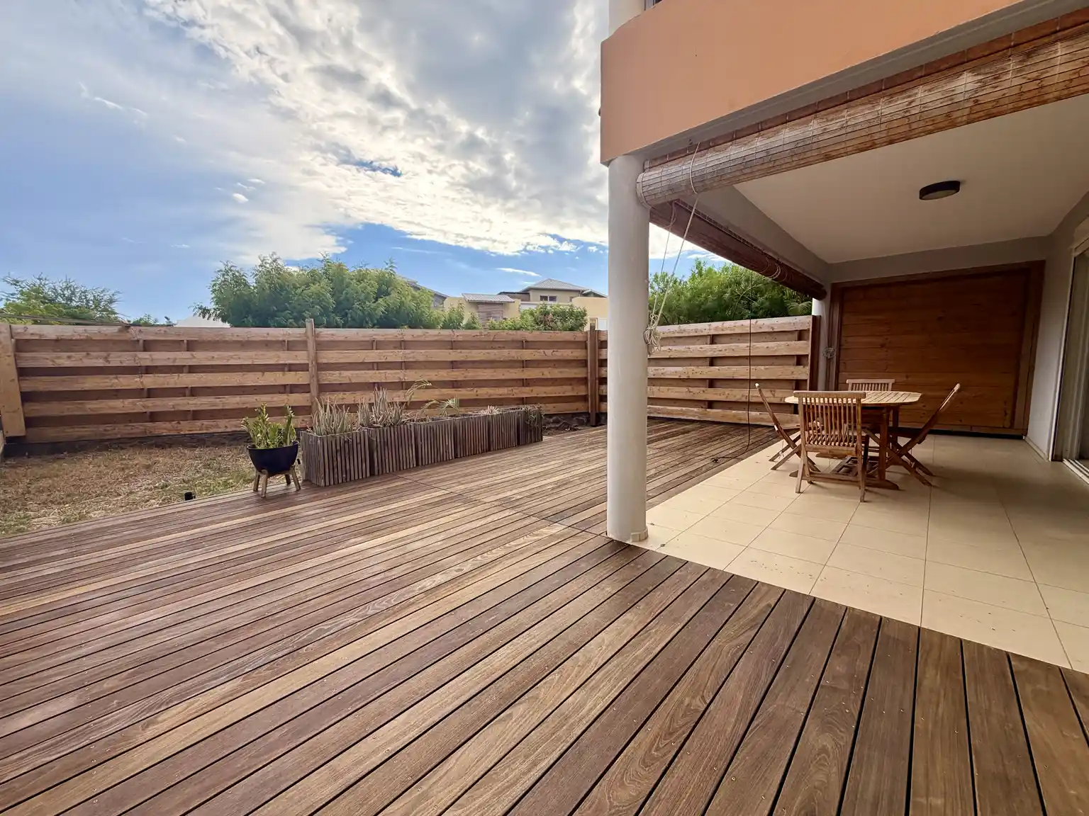 Dès votre arrivée, je vous accueille avec une entrée fonctionnelle équipée d'un placard. Mon espace de vie, lumineux et convivial, se compose d'un séjour avec cuisine ouverte, parfait pour partager des moments en famille ou entre amis. Cet espace s'ouvre naturellement sur une varangue prolongée d'une terrasse et d'un jardin, véritable prolongement de votre quotidien entre intérieur et extérieur.